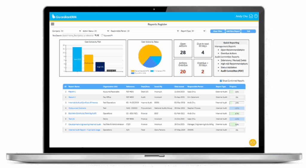 Audit Desk is a GuardianERM module. GuardianERM uses industry-standard security practices including role-based access control, encrypted connections, secure Australian cloud hosting, audit logs, and multi-level permissions. Sensitive data remains protected, and every action is fully traceable.